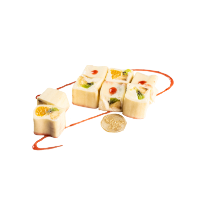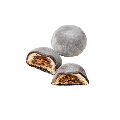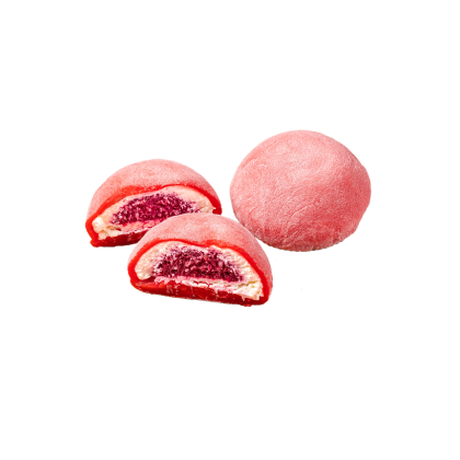 Традиционный японский десерт из в меру сладкого рисового теста с нежным кремом на основе творожного сыра и маскарпоне и яркой начинкой манго-маракуйя.