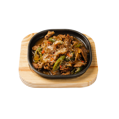 Тонкие слайсы мяса, обжаренные в устречном соусе с морковью, огурцом, луком, пекинской капустой и болгарским перцем.Вес 400гр.